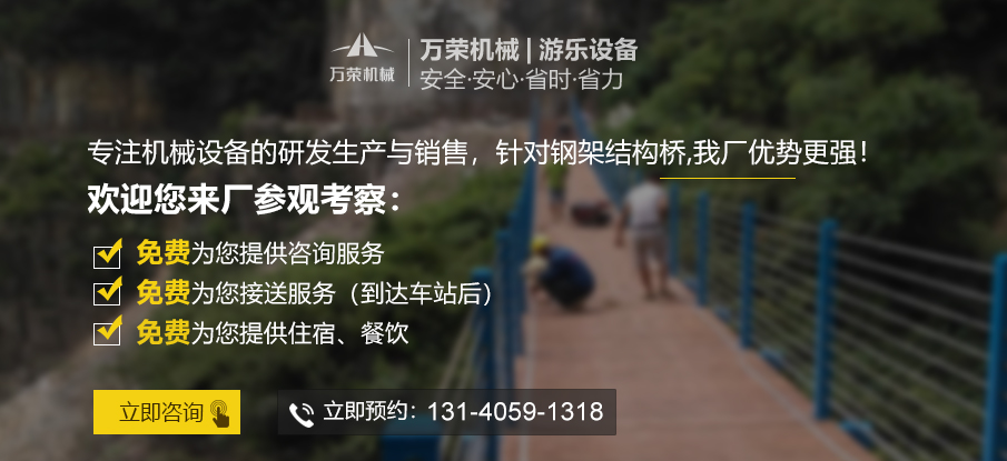歡迎進(jìn)入新鄉(xiāng)市萬榮機(jī)械有限公司官網(wǎng)!關(guān)鍵詞:吊橋廠家, 景區(qū)吊橋價格, 滑索廠家, 游樂吊橋廠家, 玻璃吊橋, 防腐木吊橋廠商 ,景區(qū)吊橋, 懸索橋設(shè)計, 滑索設(shè)備, 吊橋生產(chǎn)廠家, 吊橋多少錢, 木板吊橋, 吊橋施工廠家
