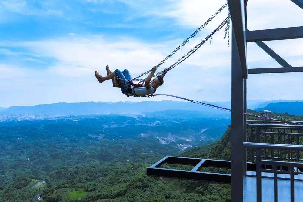 懸崖秋千是一種懸崖邊的極限刺激運動。秋千的座椅,被電吸鐵拉到懸崖內側于15米-25米高的地方,吸鐵忽然松開,長長的秋千瞬間向懸崖外蕩去,帶給人以刺激感覺。